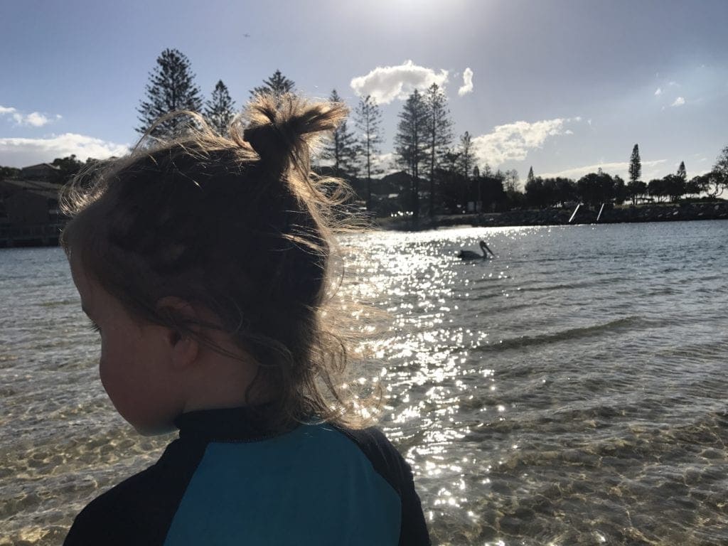 One of the definite highpoints of our visit to the beautiful Kingscliff North Holiday Park was when we walked all the way down Marine Parade to the Cudgen Creek inlet. This was a peaceful, child-friendly swimming hole that’s frequented by locals, fishermen and some pretty chilled out pelicans!